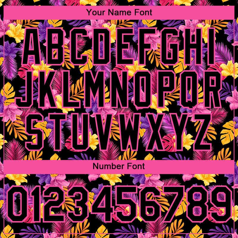 Custom Black Pink 3D Pattern Design Tropical Flower And Hawaii Palm Leaves Authentic Baseball Jersey