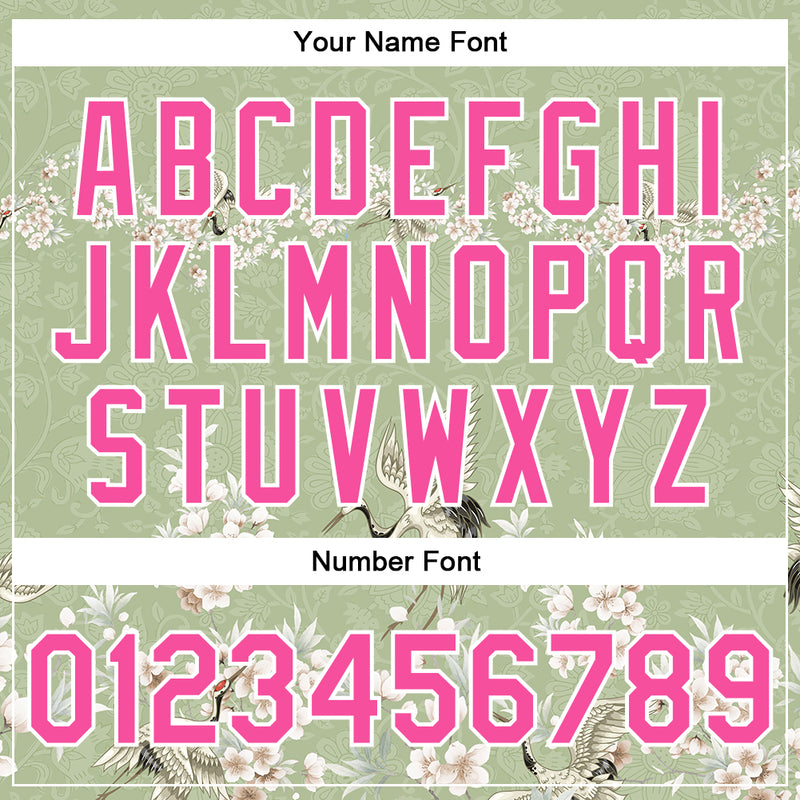 Custom Green Pink-White Flower And Crane 3D Pattern Design Bomber Full-Snap Varsity Letterman Jacket