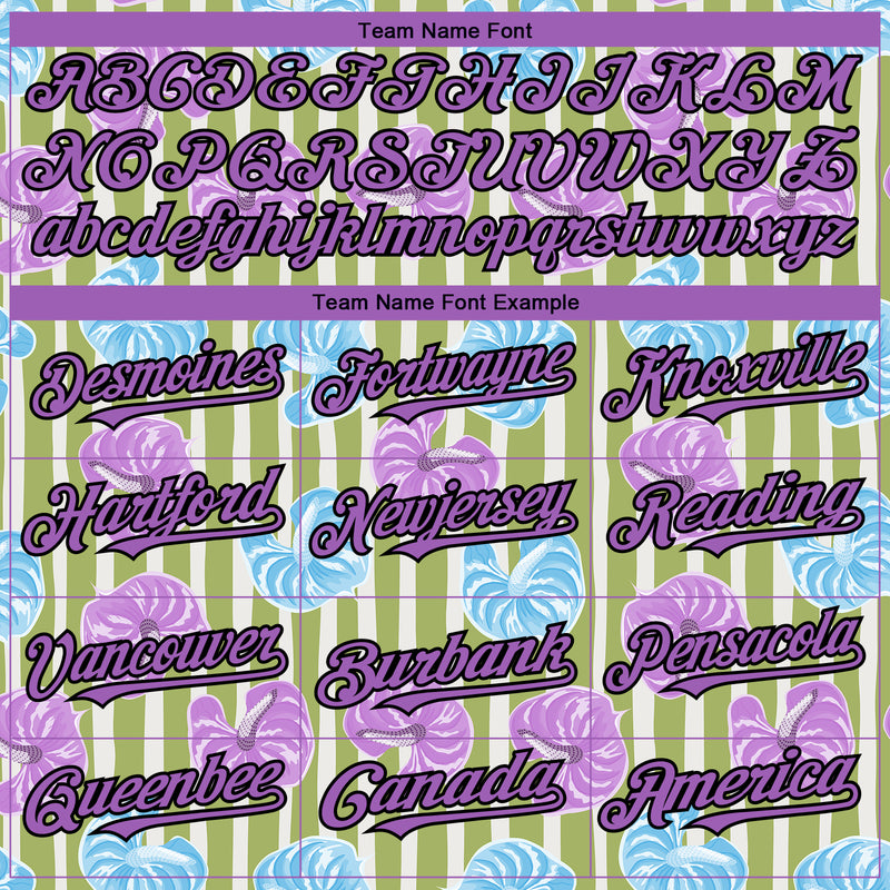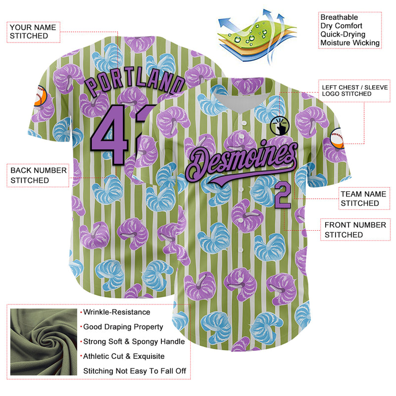 Custom Olive Medium Purple-Black 3D Pattern Design Tropical Anthurium Flower Authentic Baseball Jersey