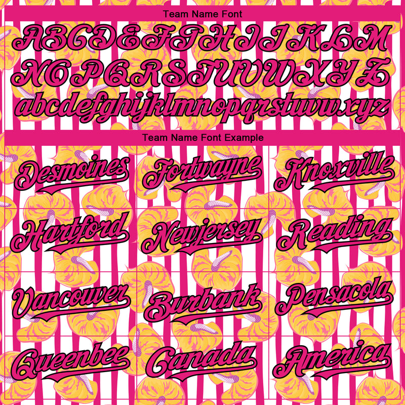 Custom White Hot Pink-Black 3D Pattern Design Tropical Anthurium Flower Authentic Baseball Jersey