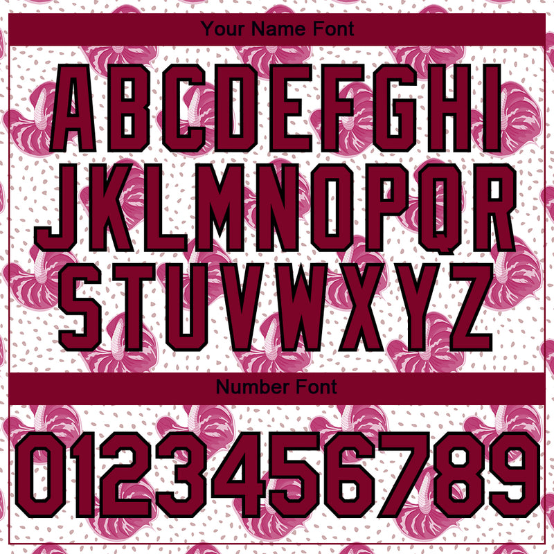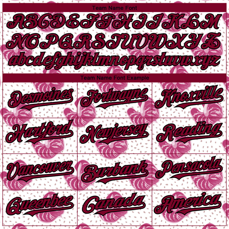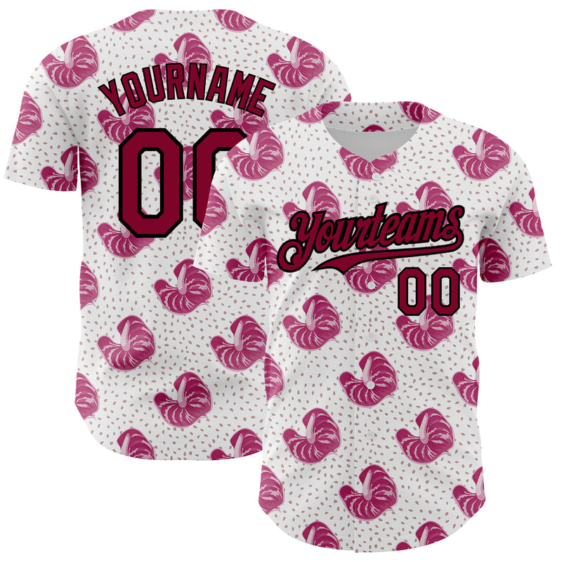Custom White Maroon-Black 3D Pattern Design Tropical Anthurium Flower Authentic Baseball Jersey