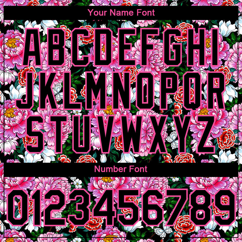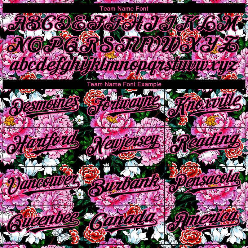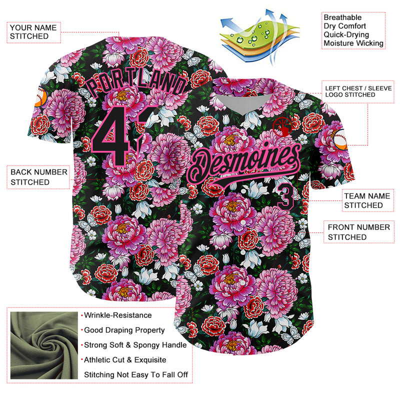 Custom Pink Black 3D Pattern Design Northeast China Big Flower Authentic Baseball Jersey