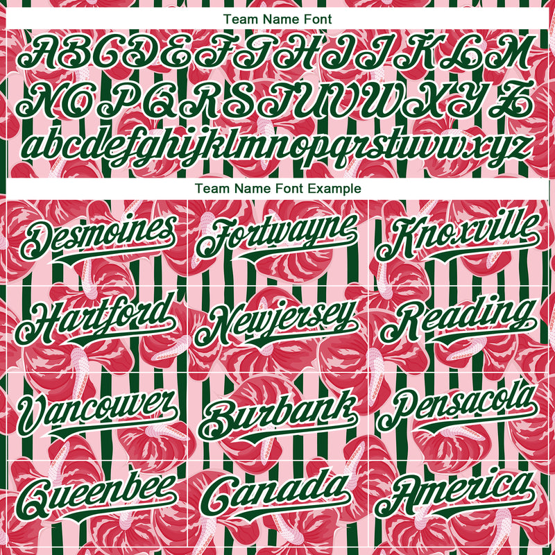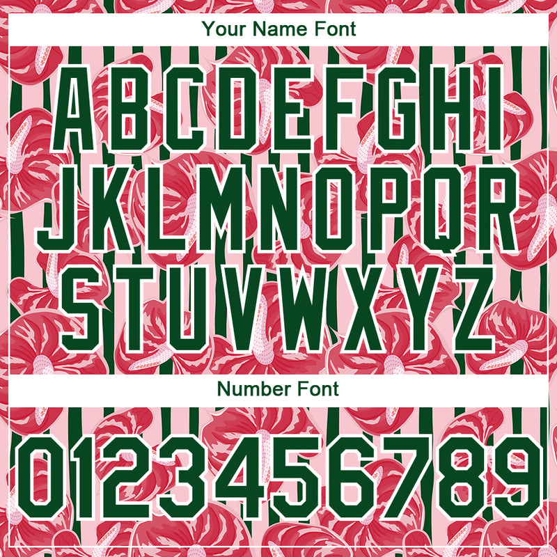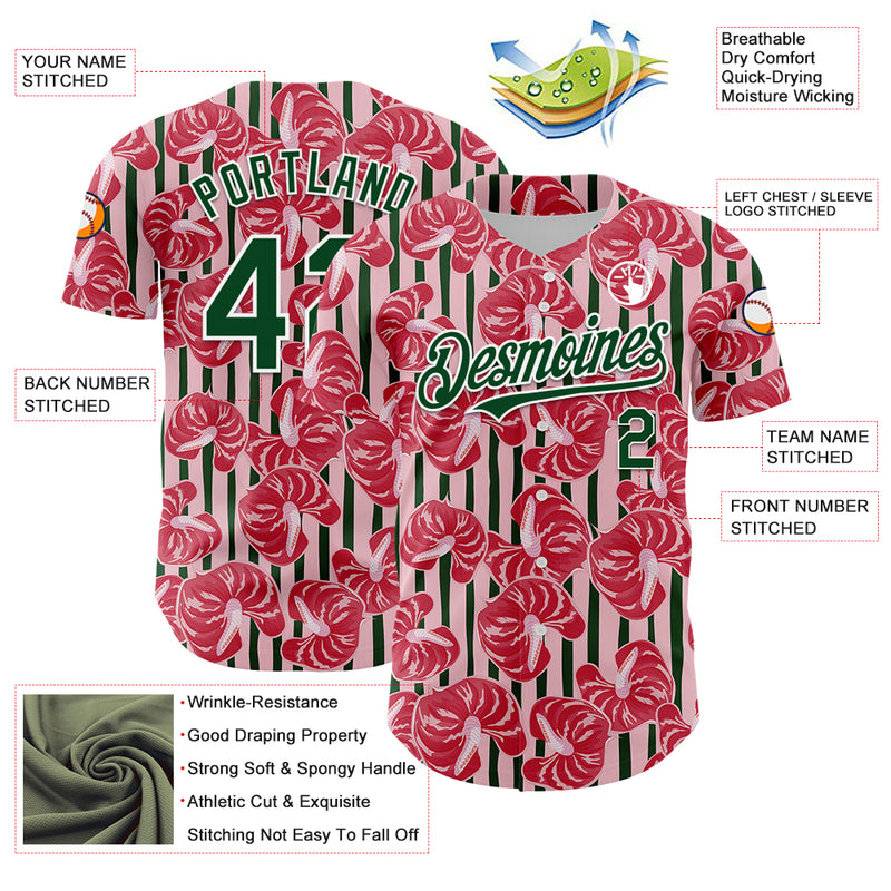 Custom Medium Pink Green-White 3D Pattern Design Tropical Anthurium Flower Authentic Baseball Jersey