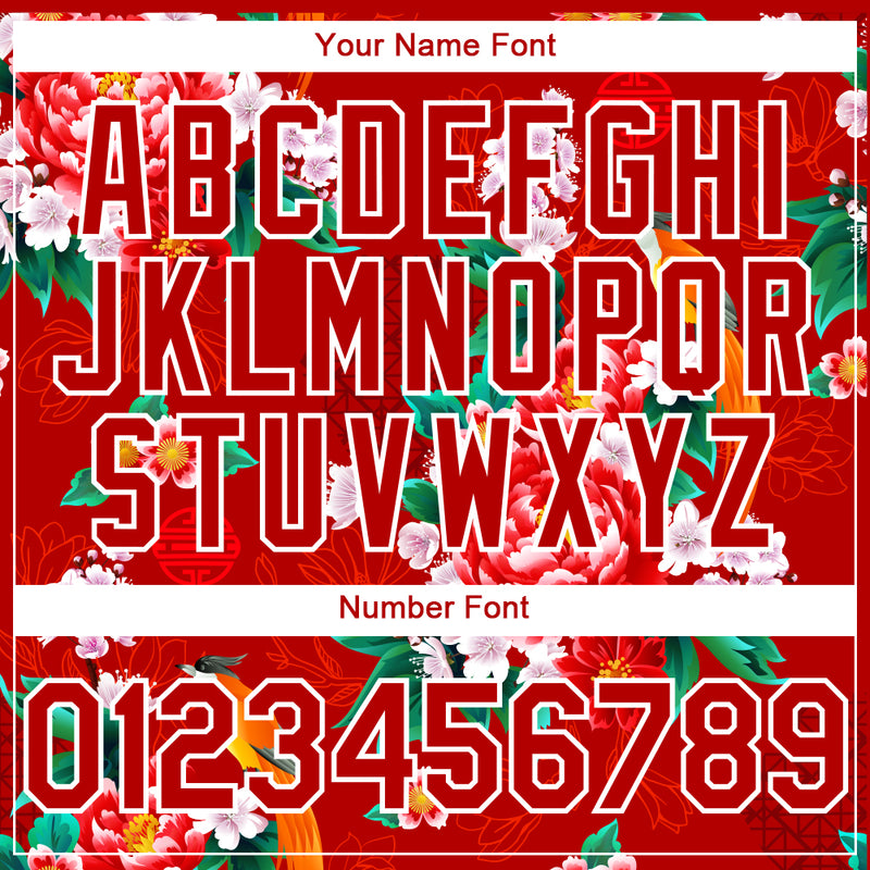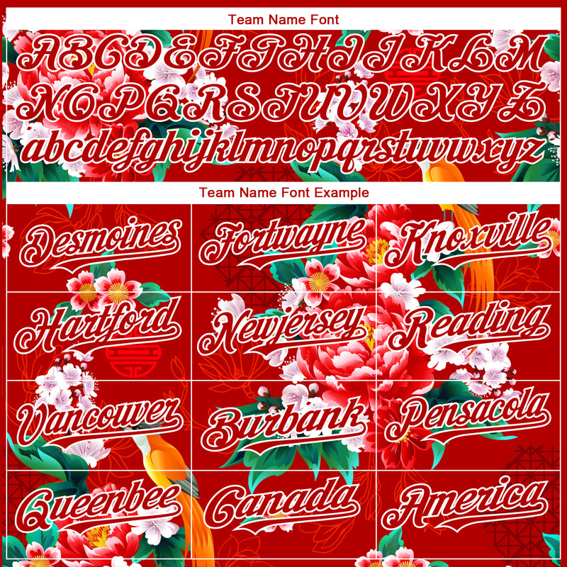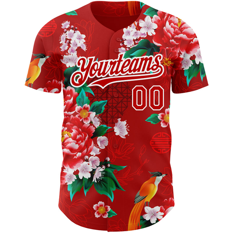 Custom Red White 3D Pattern Design Northeast China Big Flower Authentic Baseball Jersey
