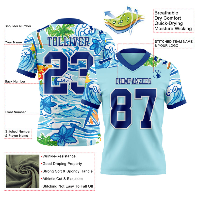 Our custom football jersey allows you to create your own design, adding your name, team logo, or any special graphics that represent your team spirit. Made from high-quality materials, it offers exceptional comfort and durability, ensuring you perform at your best in your custom uniform.
