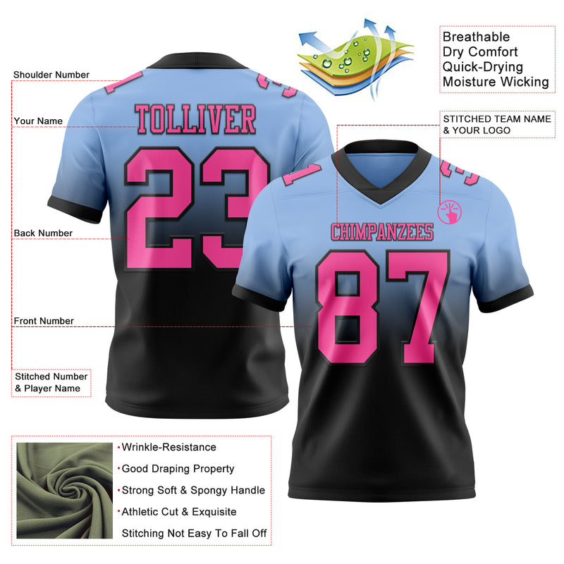 Our custom football jersey allows you to create your own design, adding your name, team logo, or any special graphics that represent your team spirit. Made from high-quality materials, it offers exceptional comfort and durability, ensuring you perform at your best in your custom uniform.