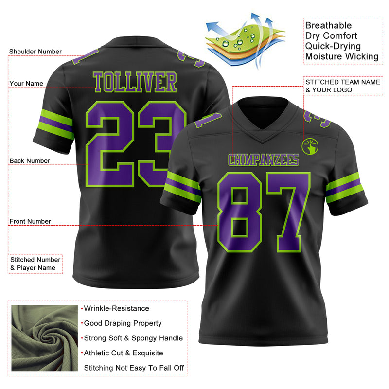 Custom Black Purple-Neon Green Authentic Football Jersey