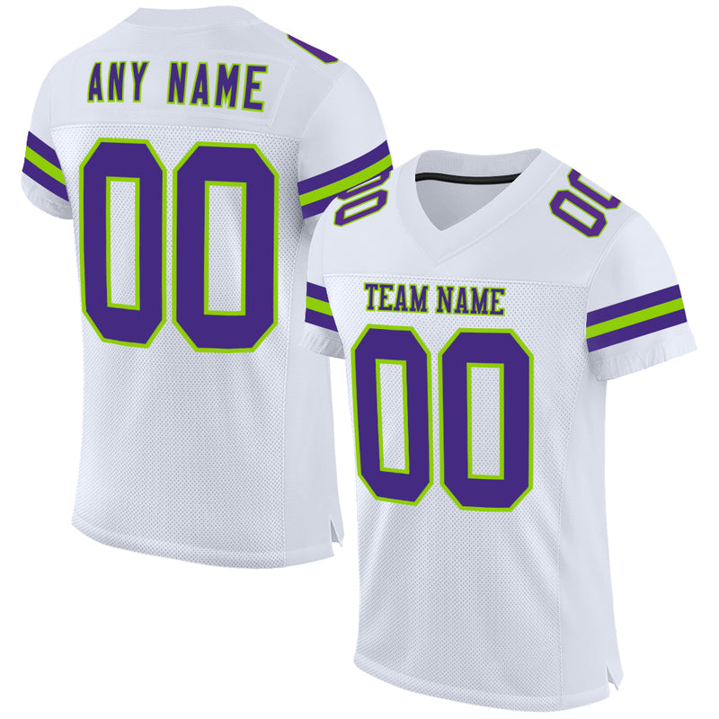 Custom White Purple-Neon Green Mesh Authentic Football Jersey