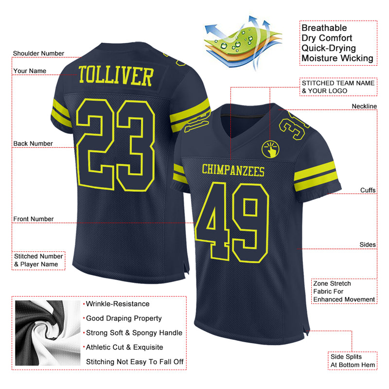 Custom Navy Neon Yellow Mesh Authentic Football Jersey