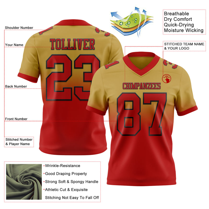 Custom Old Gold White-Black Authentic Fade Fashion Football Jersey