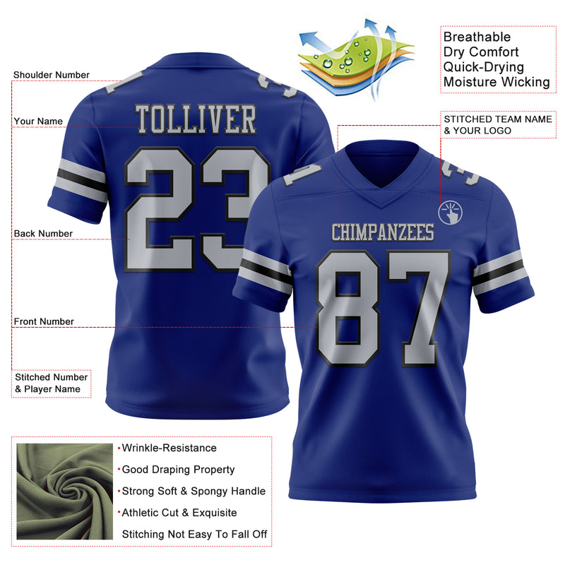 Custom Royal Gray-Black Authentic Football Jersey