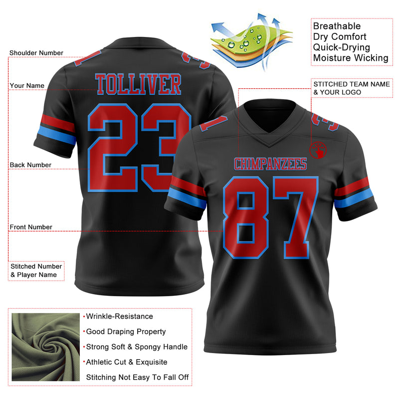 Custom Black Red-Powder Blue Authentic Football Jersey