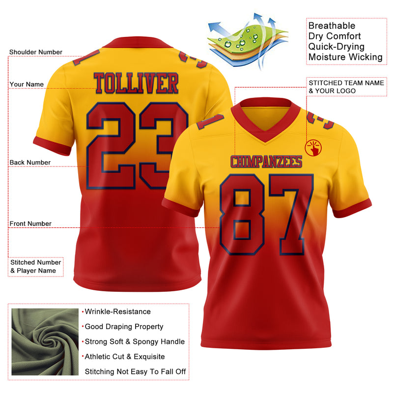Custom Gold Red-Navy Authentic Fade Fashion Football Jersey