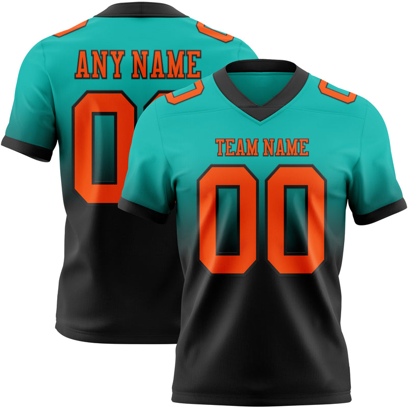 Custom Aqua Orange-Black Authentic Fade Fashion Football Jersey