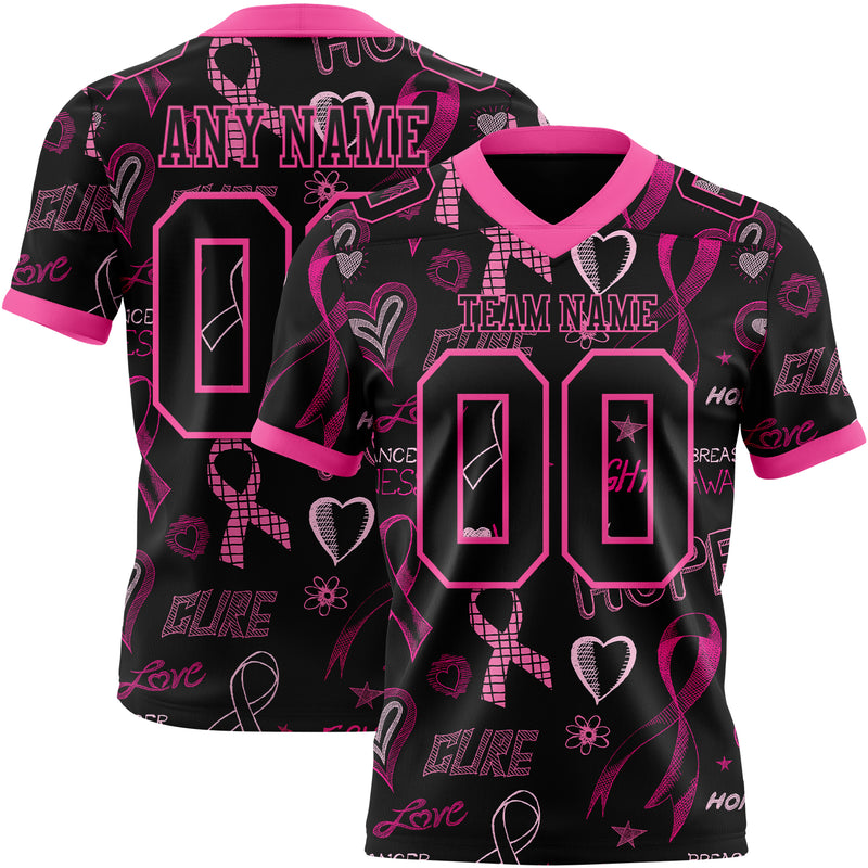 Custom Black Pink 3D Pattern Pink Ribbon Breast Cancer Awareness Month Women Health Care Support Authentic Football Jersey