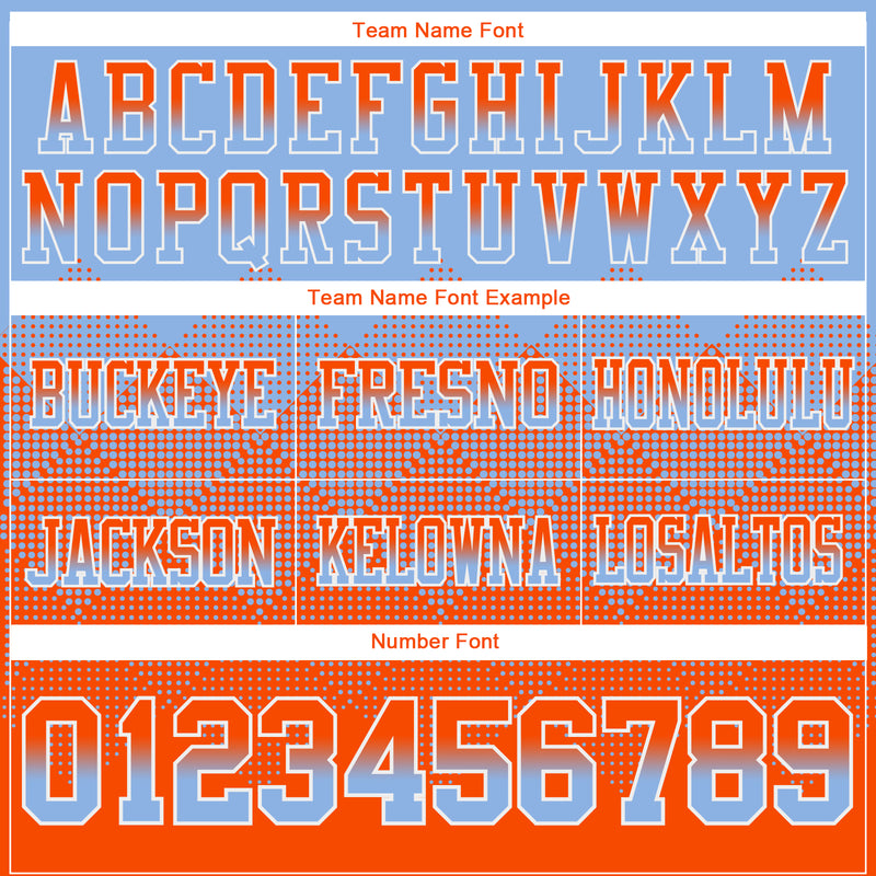 Custom Light Blue Orange-White Authentic Gradient Square Shape Flag Football Jersey