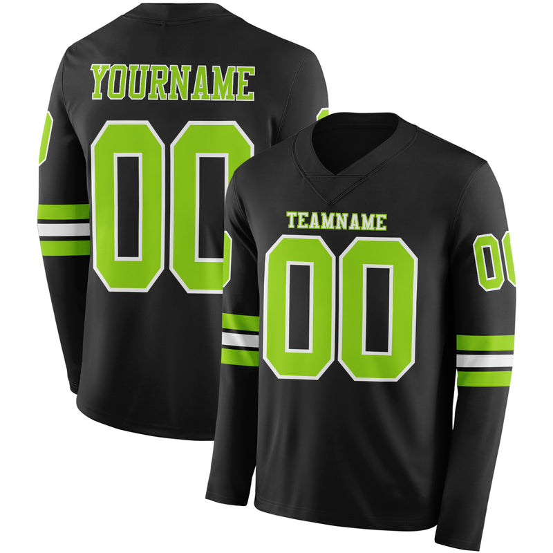 Custom Black Neon Green-White Long Sleeve Authentic Football Jersey