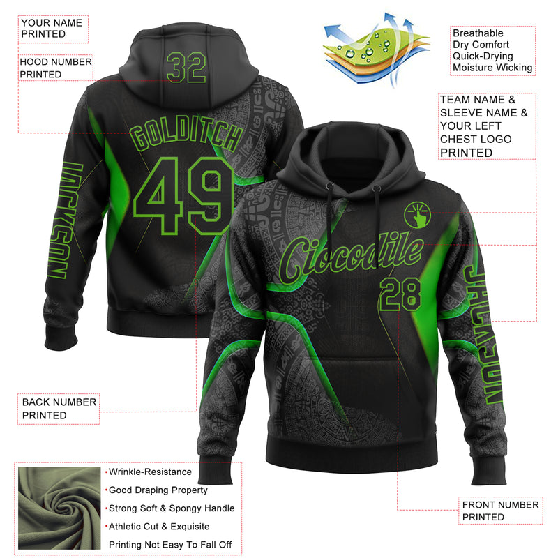 Custom Black Aurora Green 3D Pattern Design Ethnic Tribal Sportswear Pullover Sweatshirt Hoodie