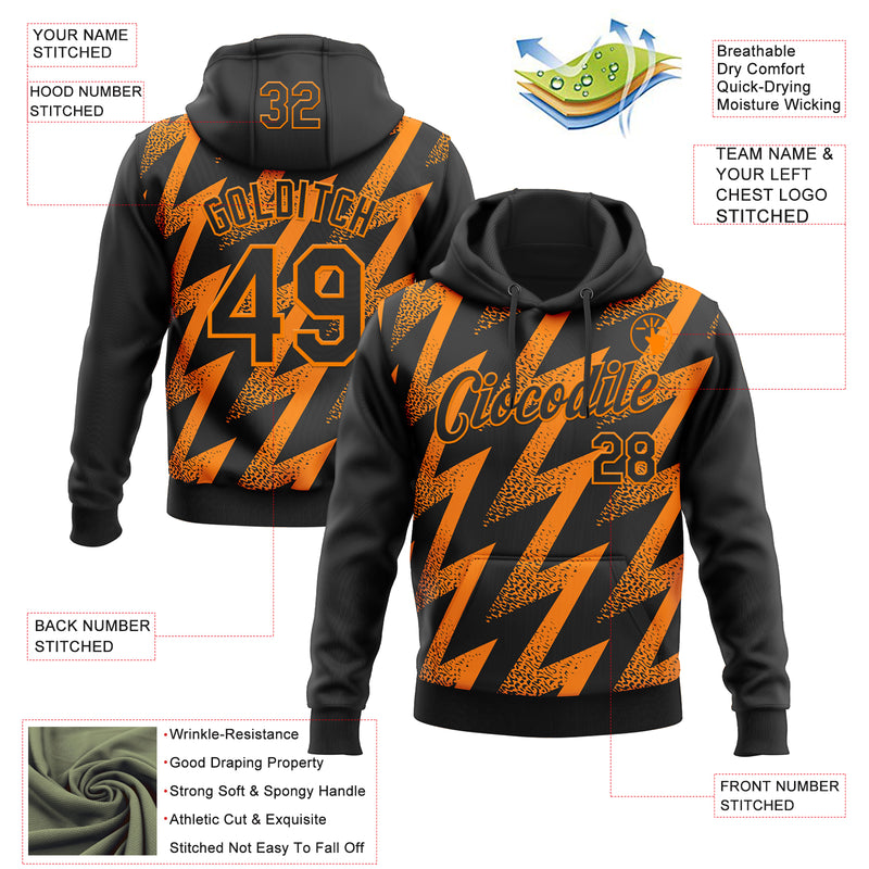 Custom Stitched Black Bay Orange Zigzag Shape Sports Pullover Sweatshirt Hoodie