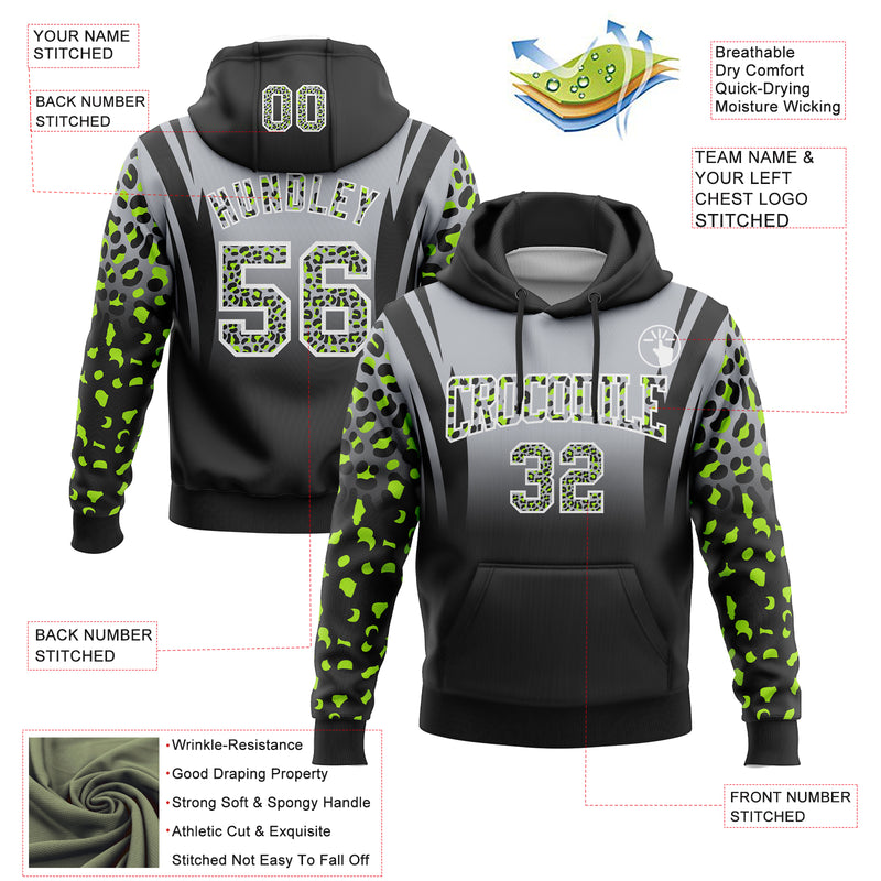 Custom Stitched Gray Black-White Fade Fashion Leopard Print Sports Pullover Sweatshirt Hoodie