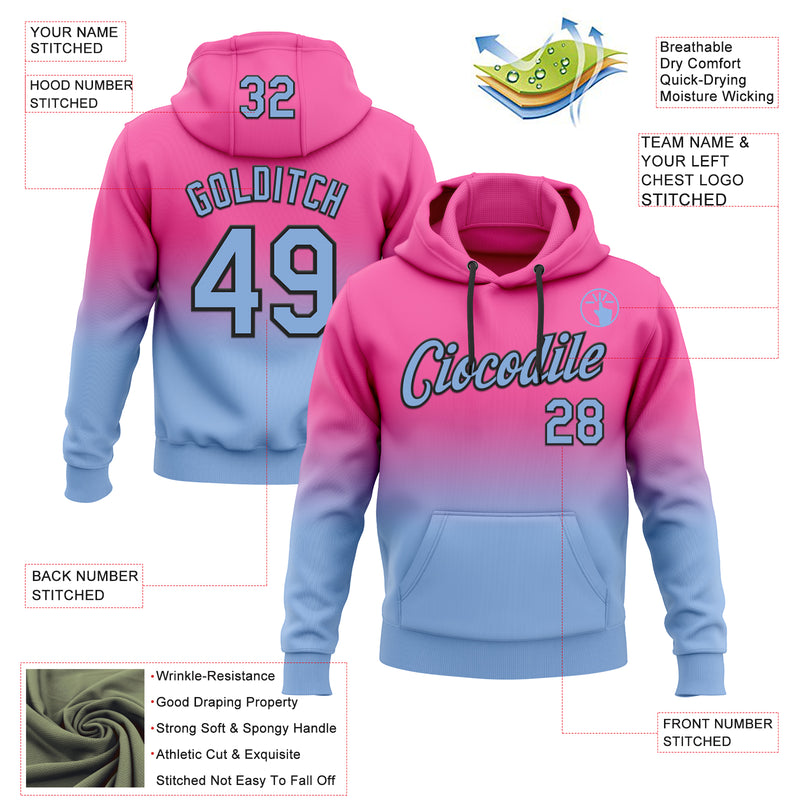 Custom Stitched Pink Light Blue-Black Fade Fashion Sports Pullover Sweatshirt Hoodie