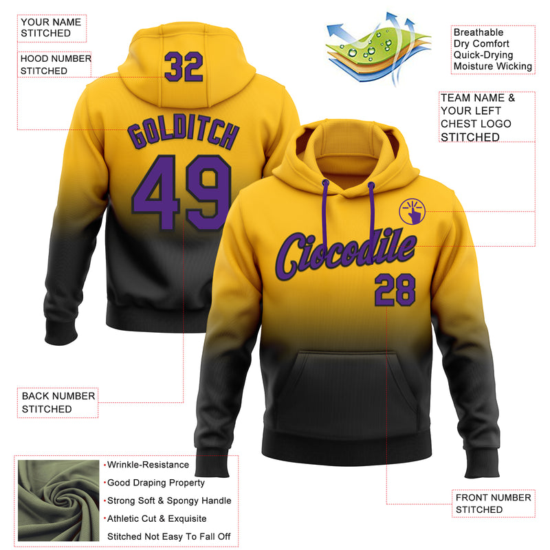 Custom Stitched Gold Purple-Black Fade Fashion Sports Pullover Sweatshirt Hoodie