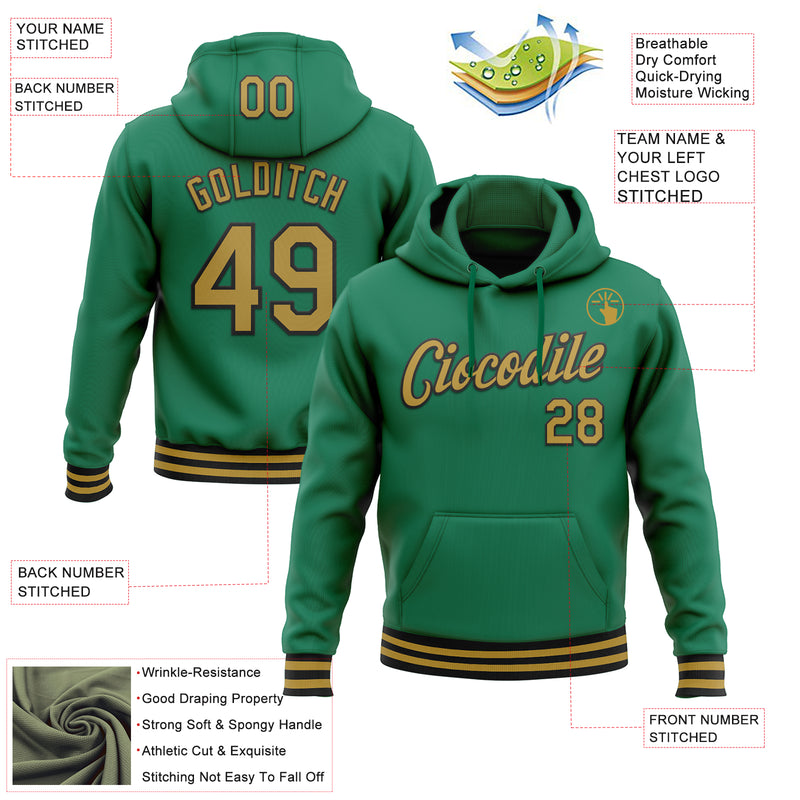 Custom Stitched Kelly Green Old Gold-Black Sports Pullover Sweatshirt Hoodie