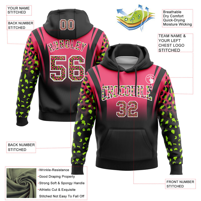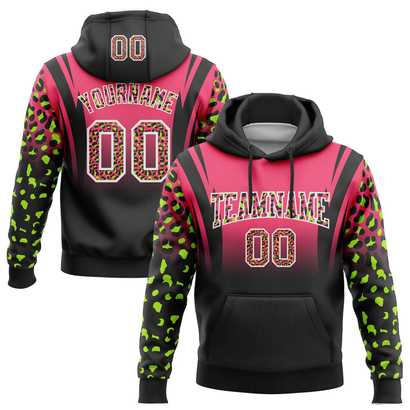 Custom Stitched Neon Pink Black-White Fade Fashion Leopard Print Sports Pullover Sweatshirt Hoodie