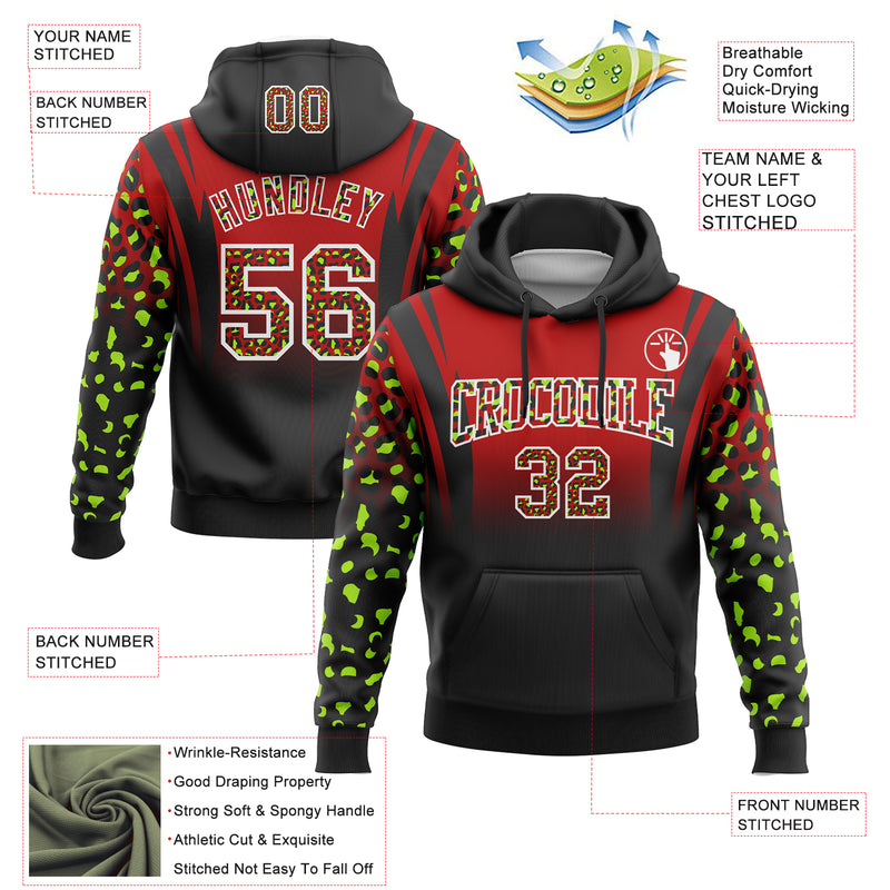 Custom Stitched Red Black-White Fade Fashion Leopard Print Sports Pullover Sweatshirt Hoodie