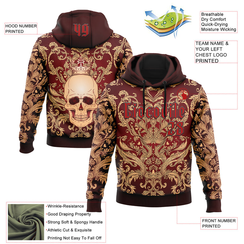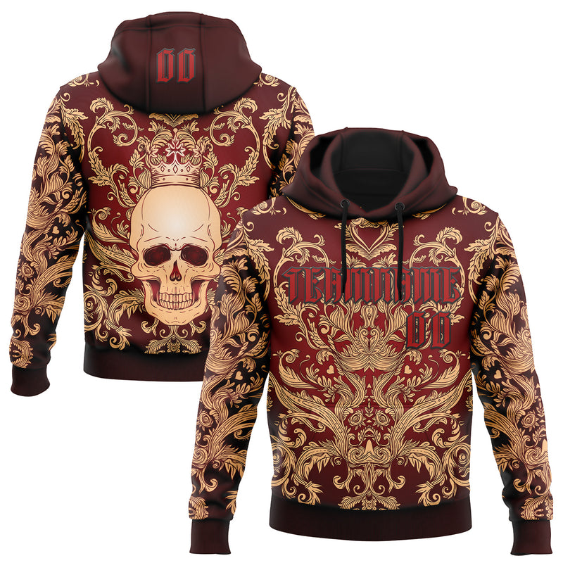 Custom Red Black 3D Skull Gothic Emperor Vintage Sports Pullover Sweatshirt Hoodie