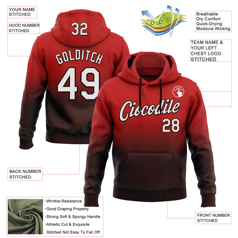 Custom Stitched Red White-Brown Fade Fashion Sports Pullover Sweatshirt Hoodie
