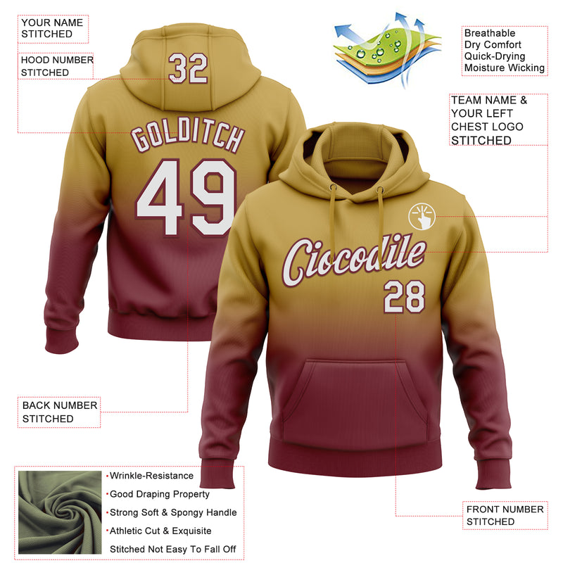 Custom Stitched Old Gold White-Burgundy Fade Fashion Sports Pullover Sweatshirt Hoodie