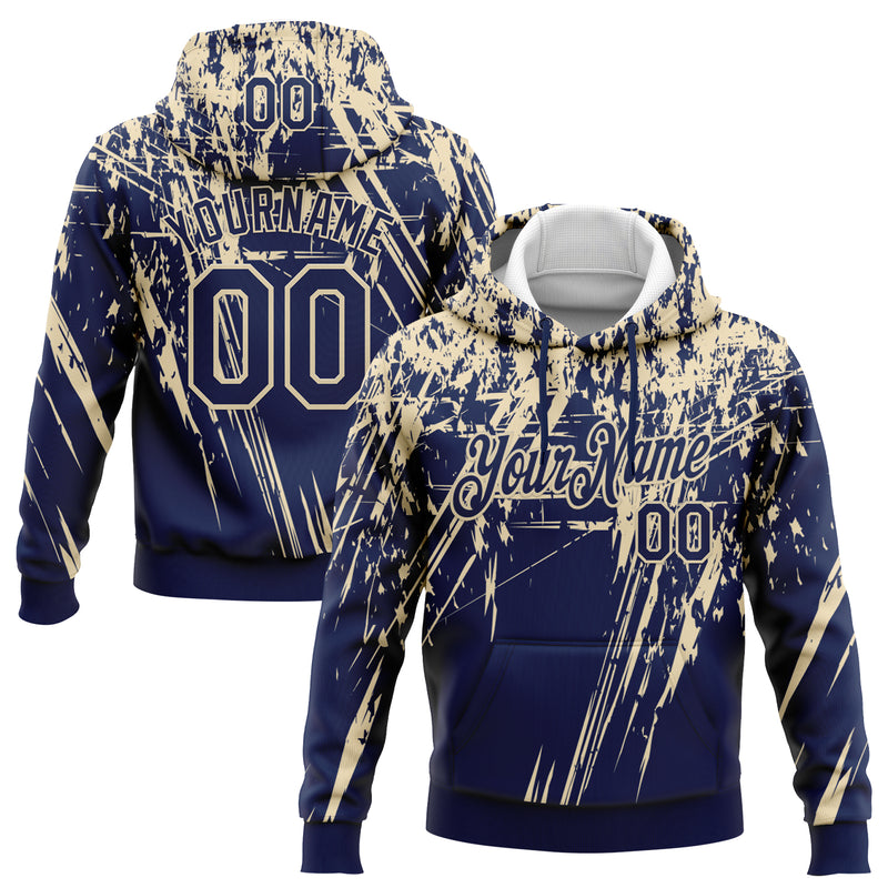 Custom Stitched Navy Cream 3D Pattern Design Splash Grunge Art Sports Pullover Sweatshirt Hoodie