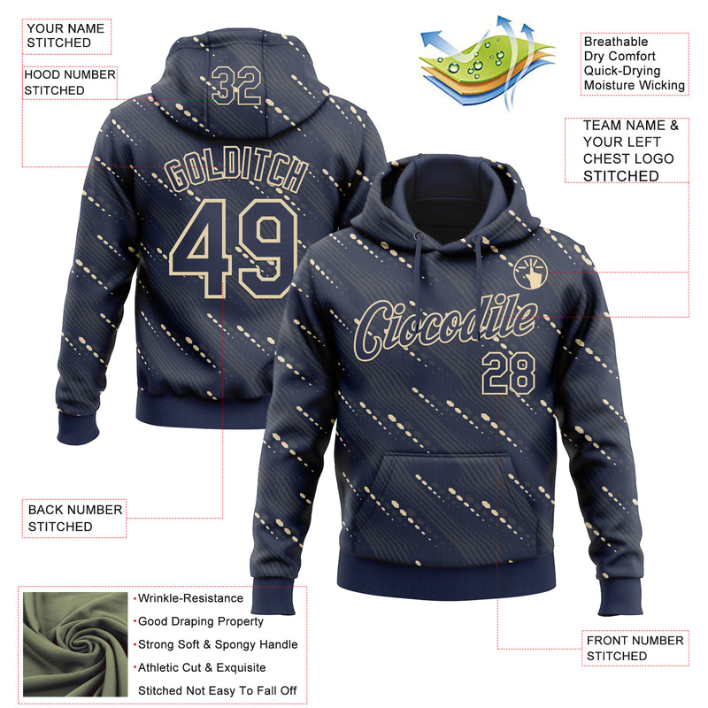 Custom Stitched Navy Cream Slant Lines Sports Pullover Sweatshirt Hoodie
