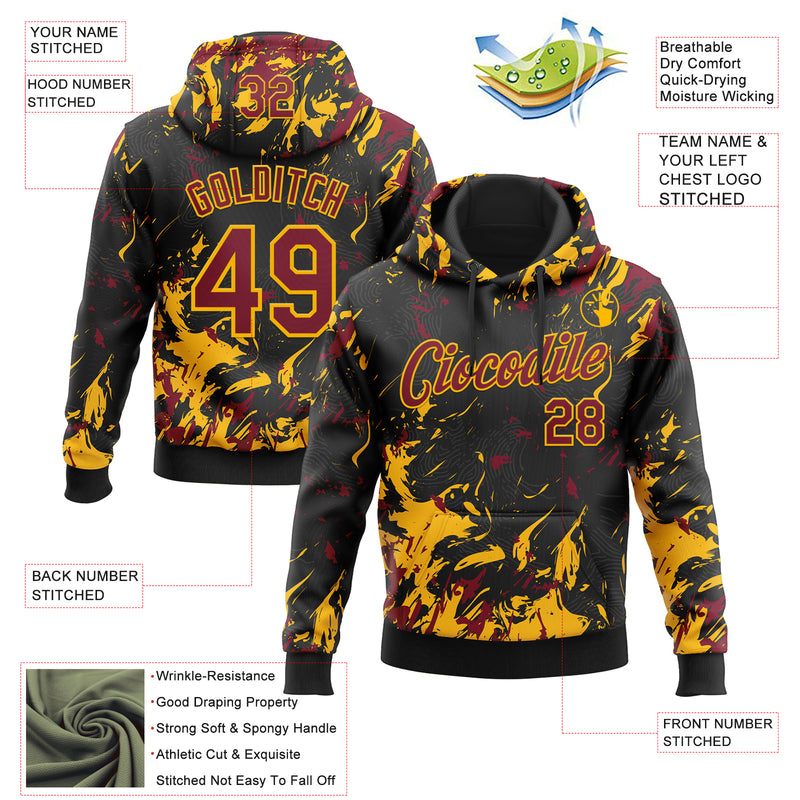 Custom Stitched Black Crimson-Gold Splash Sports Pullover Sweatshirt Hoodie
