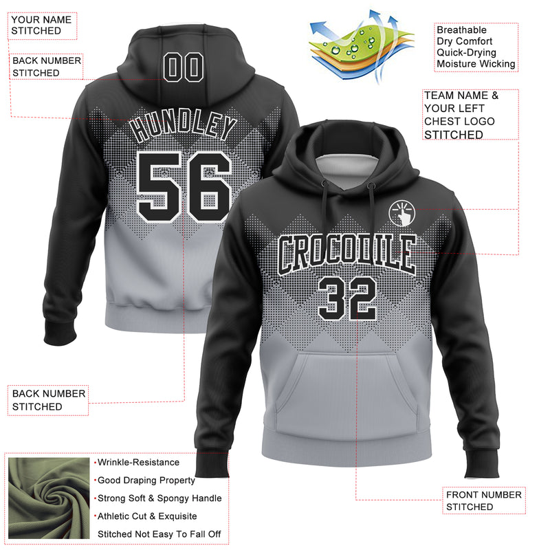 Custom Stitched Black Gray-White 3D Pattern Design Gradient Square Shape Sports Pullover Sweatshirt Hoodie