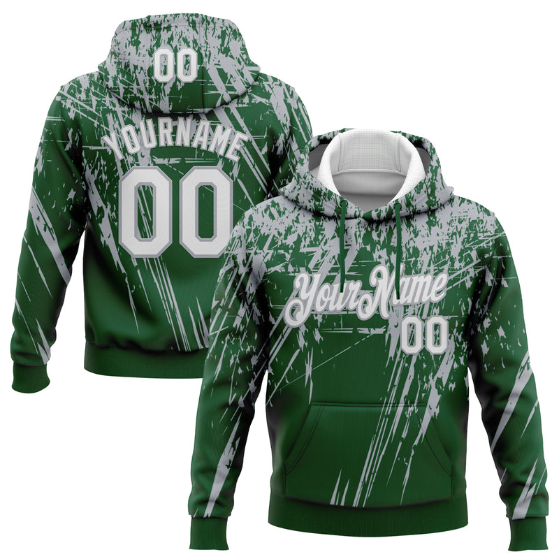 Custom Stitched Green White-Gray 3D Pattern Design Splash Grunge Art Sports Pullover Sweatshirt Hoodie