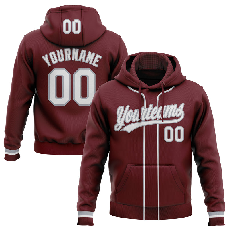 Custom Stitched Burgundy White-Gray Baseball Pullover Sweatshirt Hoodie