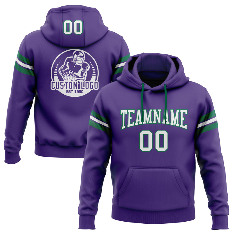 Custom Stitched Purple White-Kelly Green Football Pullover Sweatshirt Hoodie