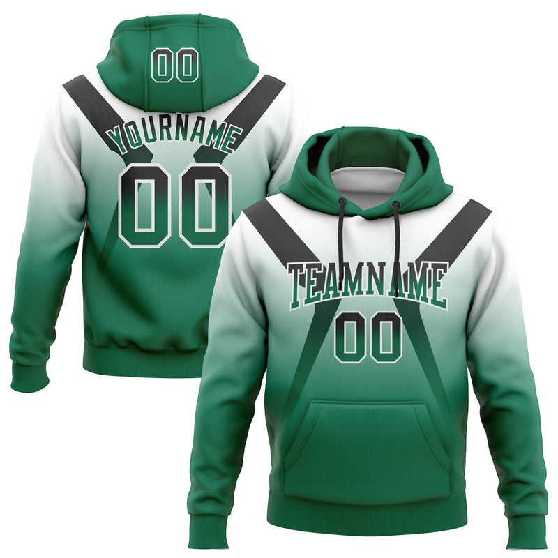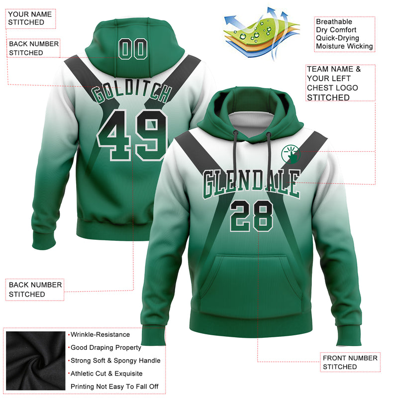 Custom Stitched White Black-Kelly Green Fade Fashion Arrow Sports Pullover Sweatshirt Hoodie