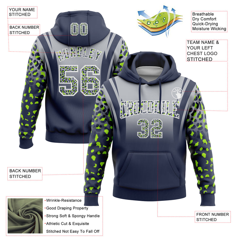 Custom Stitched Gray Navy-White Fade Fashion Leopard Print Sports Pullover Sweatshirt Hoodie