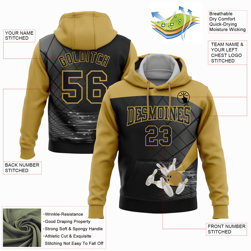 Custom Black Old Gold 3D Bowling Sports Pullover Sweatshirt Hoodie