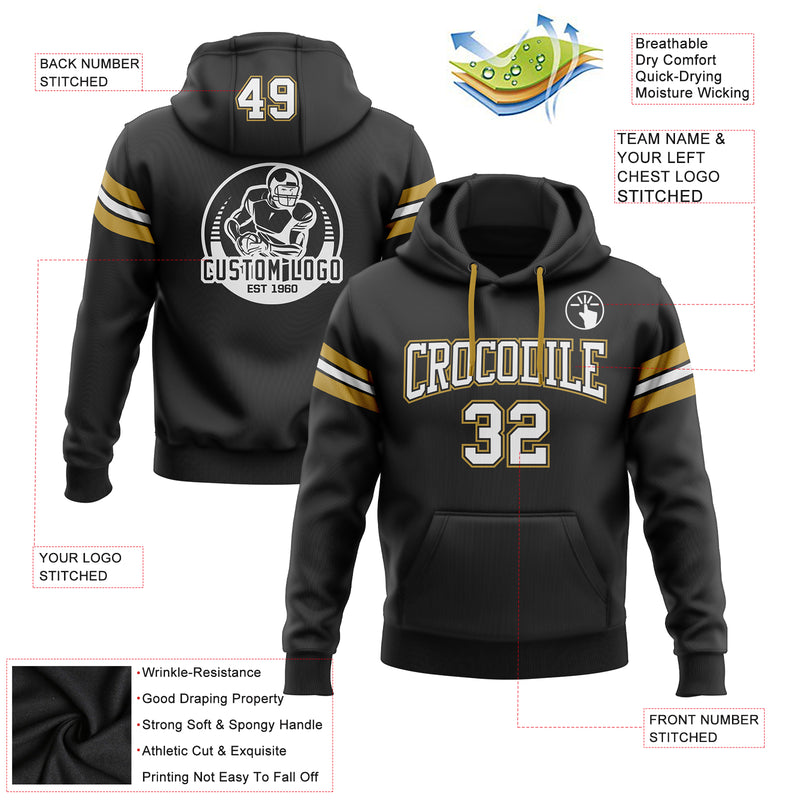 Custom Stitched Black White-Old Gold Football Pullover Sweatshirt Hoodie