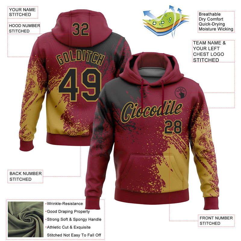 Custom Stitched Crimson Black-Old Gold 3D Pattern Design Abstract Brush Stroke Sports Pullover Sweatshirt Hoodie