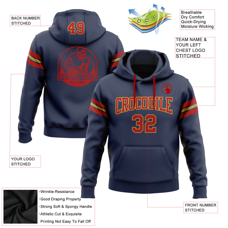 Custom Stitched Navy Red-Old Gold Football Pullover Sweatshirt Hoodie