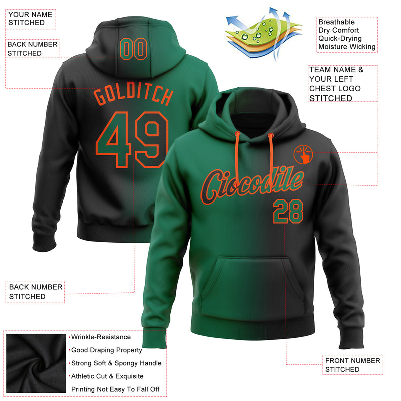 Custom Stitched Black Kelly Green-Orange Gradient Fashion Sports Pullover Sweatshirt Hoodie