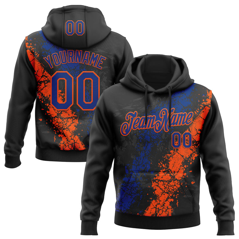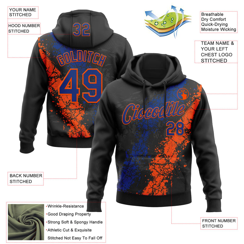 Custom Stitched Black Royal-Orange Splash Sports Pullover Sweatshirt Hoodie
