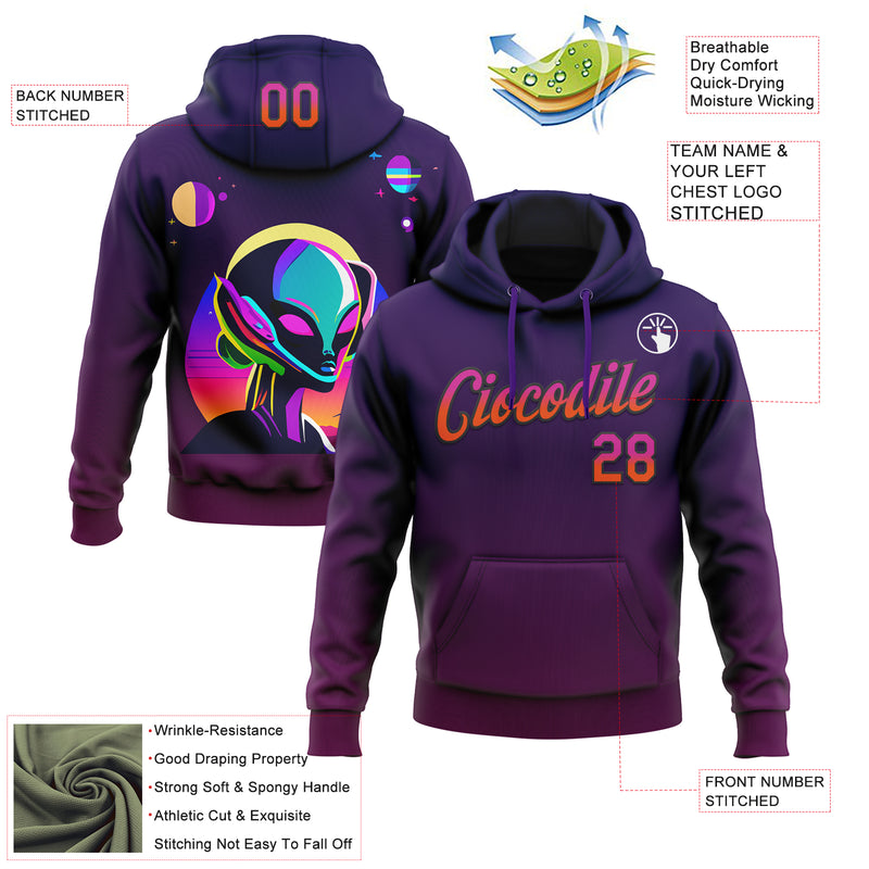 Custom Stitched Purple Deep Pink Orange-Black 3D Halloween Sports Pullover Sweatshirt Hoodie