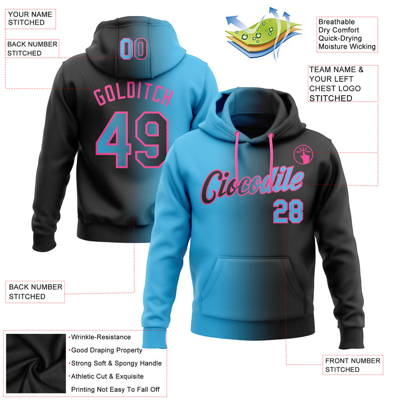Custom Stitched Black Sky Blue-Pink Gradient Fashion Sports Pullover Sweatshirt Hoodie