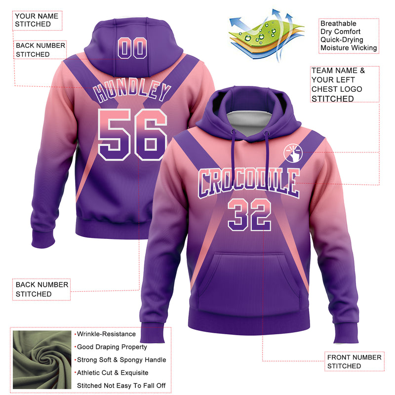 Custom Stitched Medium Pink Purple-White Fade Fashion Arrow Sports Pullover Sweatshirt Hoodie
